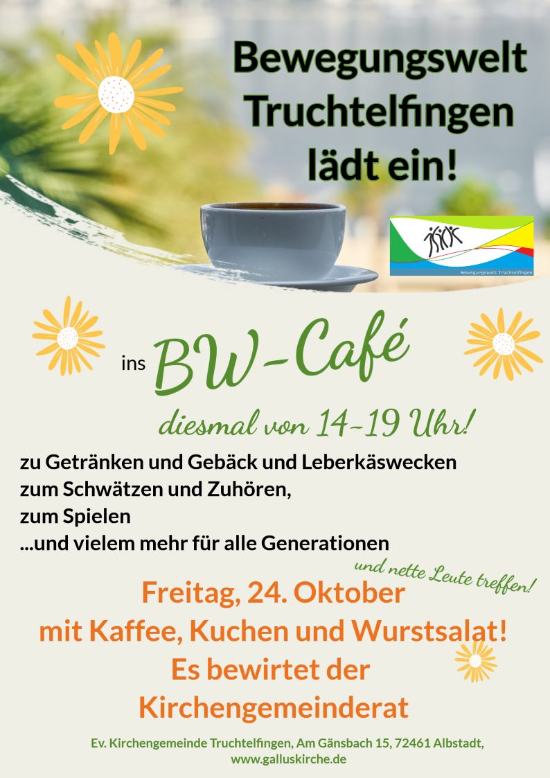 BW Café ab 15.30 Uhr, Vesper ab 17.00 Uhr!